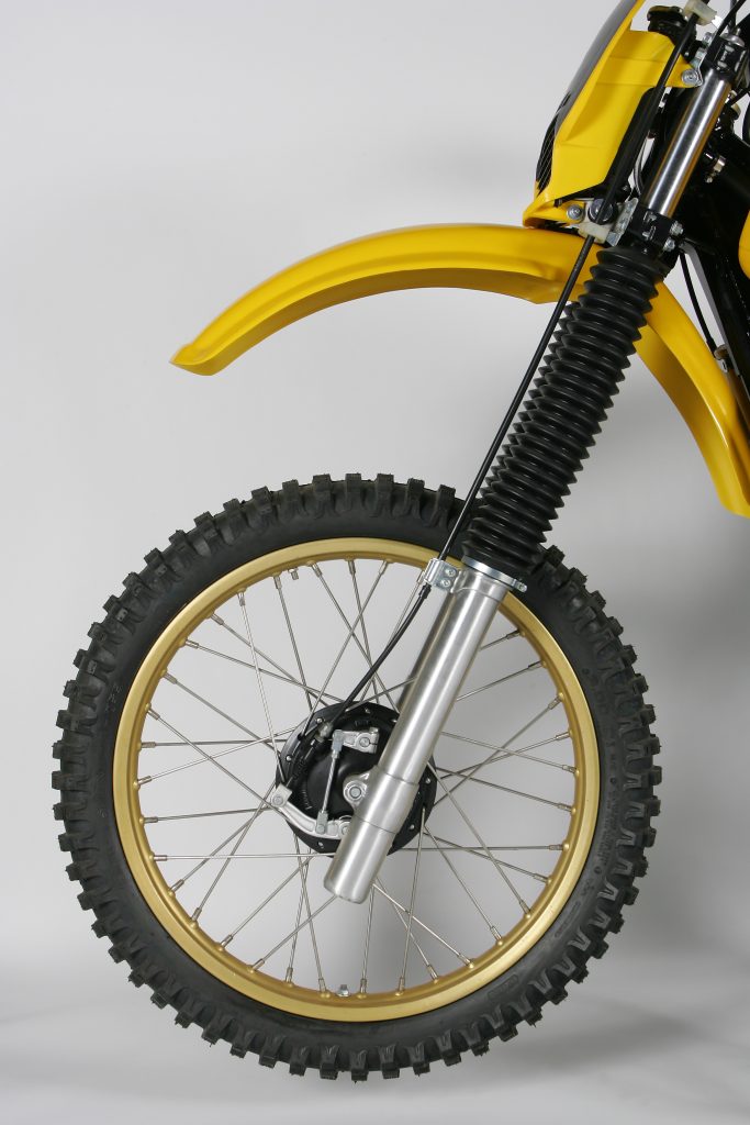 Up front, the new YZ featured a set of beefy 43mm Kayaba forks. The forks lacked damping adjustments but could be tuned by adjusting the oil level and adding or subtracting air pressure. Overall travel was a standard-for-the-time 11-inches.