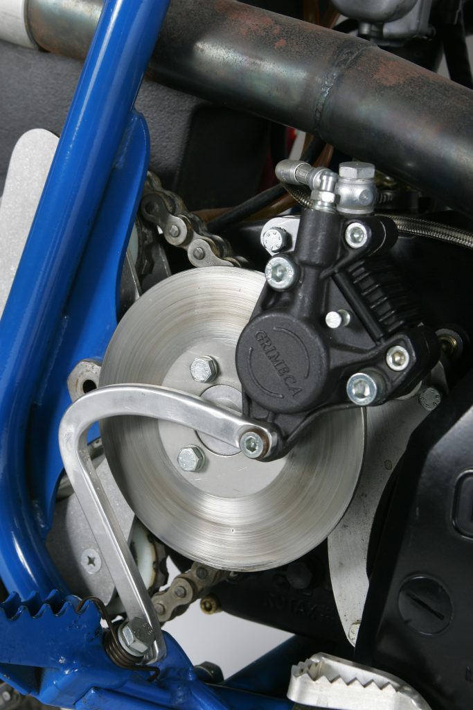 One of the unique traits of all ATKs was this countershaft-mounted disc. This design was used to reduce unsprung weight and lessen brake torque on the rear suspension. Unfortunately, braking power and fade resistance were reduced greatly by its diminutive size. Photo Credit: Stephan LeGrand