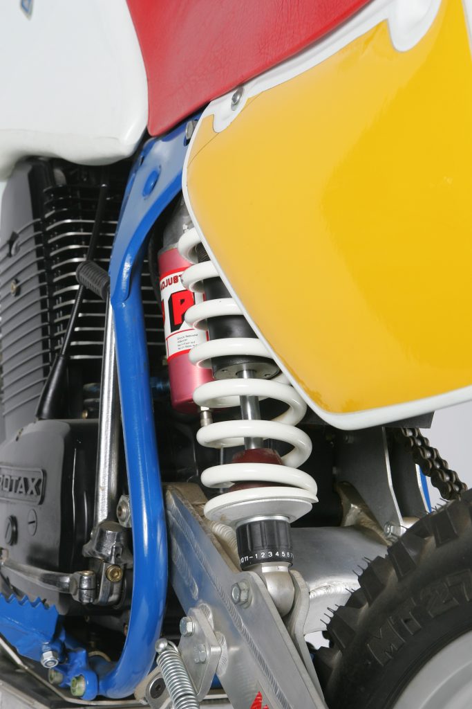 The ATK 604 used a White Power shock mounted directly to left side of the swingarm. Much like a 1998-2010 KTM, there was no linkage between the shock and the swingarm. This simplified servicing and saved weight. Photo Credit: Stephan LeGrand