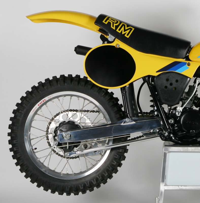 In the fork department, the Z model’s 38mm Kayaba conventional forks offered 11.2” of plush travel. They were praised at the time for their smooth action and comfortable ride. By modern standards, they were incredibly soft, but in ’82, they were considered excellent performers. Faster riders needed stiffer springs, but overall they were rated very highly for most riders. When combined with the awesome rear shock, the RM125-Z offered the best suspension package in the 1982 125 class.