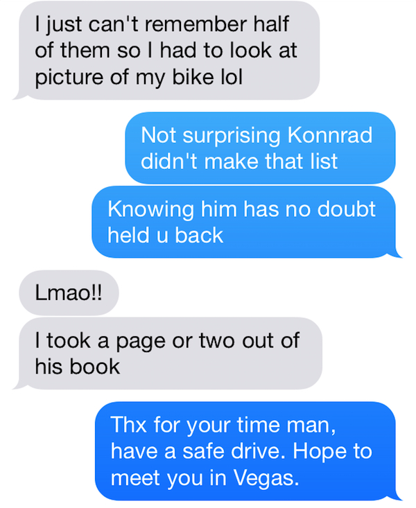After doing a little cyber stalking, I realized Brad was from the same town as me. Instantly I was intrigued and it didn’t take me long to find someone that knew him and had his phone number. Everyone has that one friend that somehow knows everyone; that friend of mine is Konrad. He’s like my little black moto book full of numbers that are a sure thing and a guaranteed good time. Lets get to know Brad together in this interview: