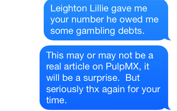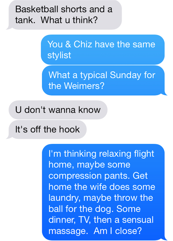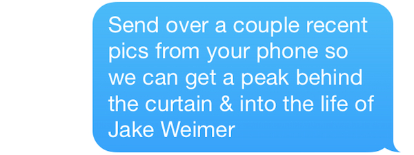 This week, I was paid back some gambling debts by way of Jake Weimer’s phone number…