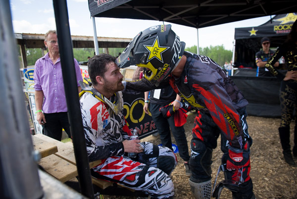 | Moto two saw one of the closest finishes in Canadian moto history. Goerke grabbed the early lead and looked like a solid bet to take the 1-1 sweep on the day but Pourcel bided his time and when some lappers caused Goerke to switch up his lines, Pourcel got a good drive around the outside on the way into the final rhythm section and the pair were side by side going into finish line, with Pourcel edging Goerke for the win in dramatic fashion. The Crafty Frenchman strikes again. |