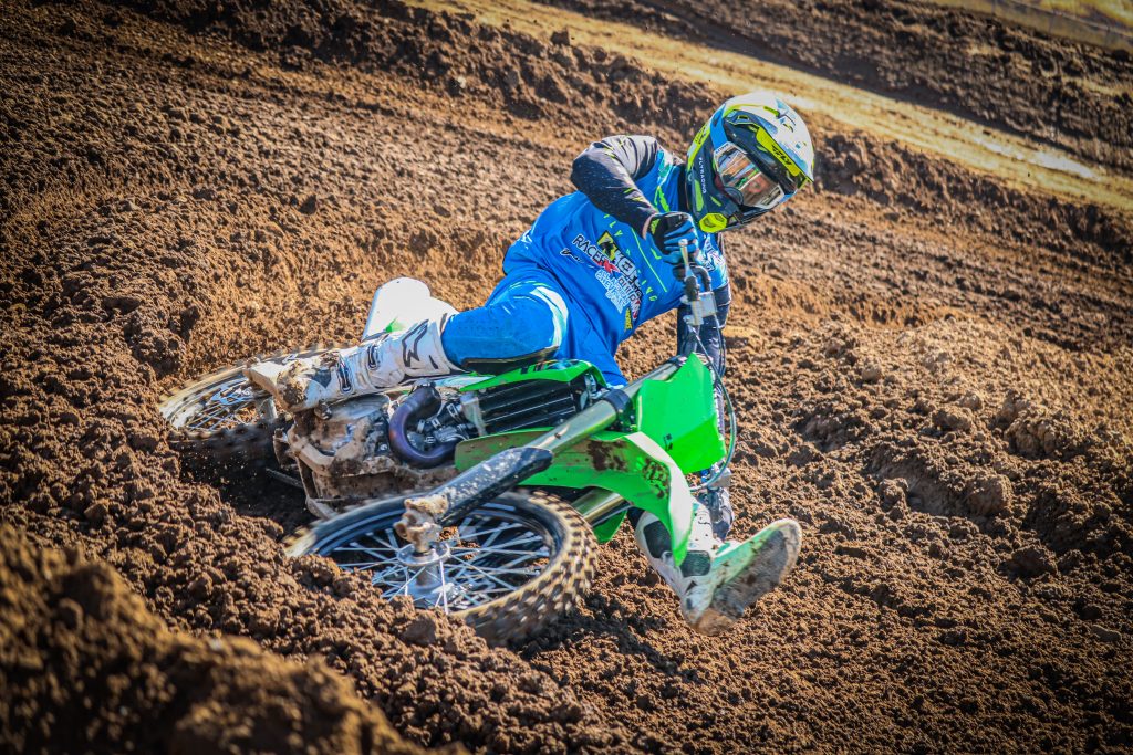 Weight Feeing (Chassis): the 2021 KX450 is a very free feeling yet smooth, which makes this bike have a very light/nimble feeling through corners. I am able to lay it down with ease and cut down under a blown out rut almost as easy as a KTM/Husqvarna. I do get a little twitch on de-cel (which can be fixed with a fork spring change), but it wasn’t a horrible or un-easy feeling. Straight line stability is still the same straight and arrow Kawasaki feel that you expect, but with added rear wheel traction. The frame absorption is the best attribute to this machine and other manufacturers should take notice of how well this KX450 feels when the track goes to crap. The whole bike feels friendlier than any other 2020 machine on square edge and the only other one that comes close in comfort is the Yamaha YZ450F