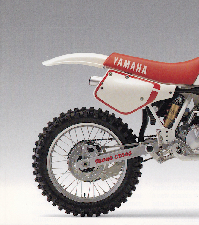 New bars for 1988 improved the YZ’s notoriously uncomfortable bar bend, but did nothing for its palm-chewing grips. Photo Credit: Yamaha |