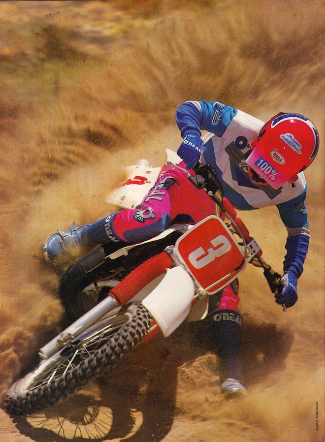 The chassis of the ’88 YZ favored stability over razor sharpness. The front end was very light and prone to wheelies under acceleration, so care had to be taken to maintain your line under power. On the plus side, however, there was none of the heart-stopping headshake that made riding the Honda such a white-knuckle experience. Photo Credit: Fran Kuhn |