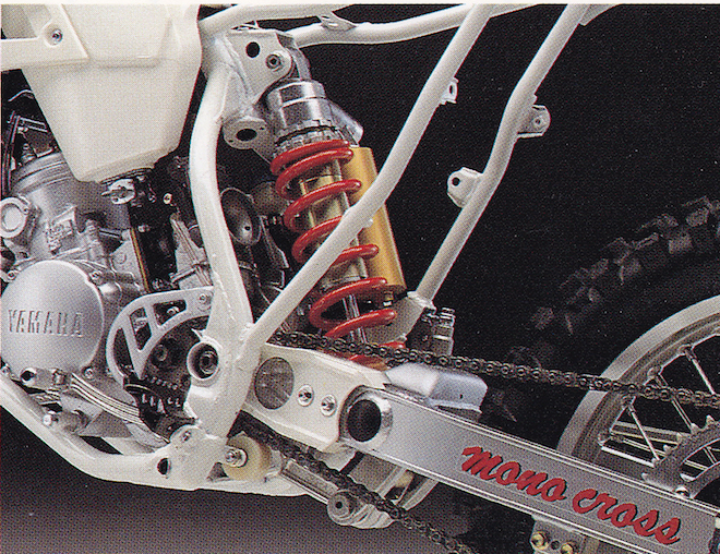 Two minor irritations on the ’88 YZ were its lack of a removable rear subframe and Yamaha’s usage of a slab of concrete for its chain buffer. The subframe omission was puzzling when three of the YZ’s competitors offered this time and hassle-saving feature, while the chain buffer was perhaps a bit more forgivable. On the plus side, it was unbelievably durable and likely to outlast every other part on the bike. On the negative side, the incessant clattering the chain made when slapping up against this hunk of Adamantium was more annoying than a Red Bull-fueled five-year-old with a drum set. Photo Credit: Yamaha |
