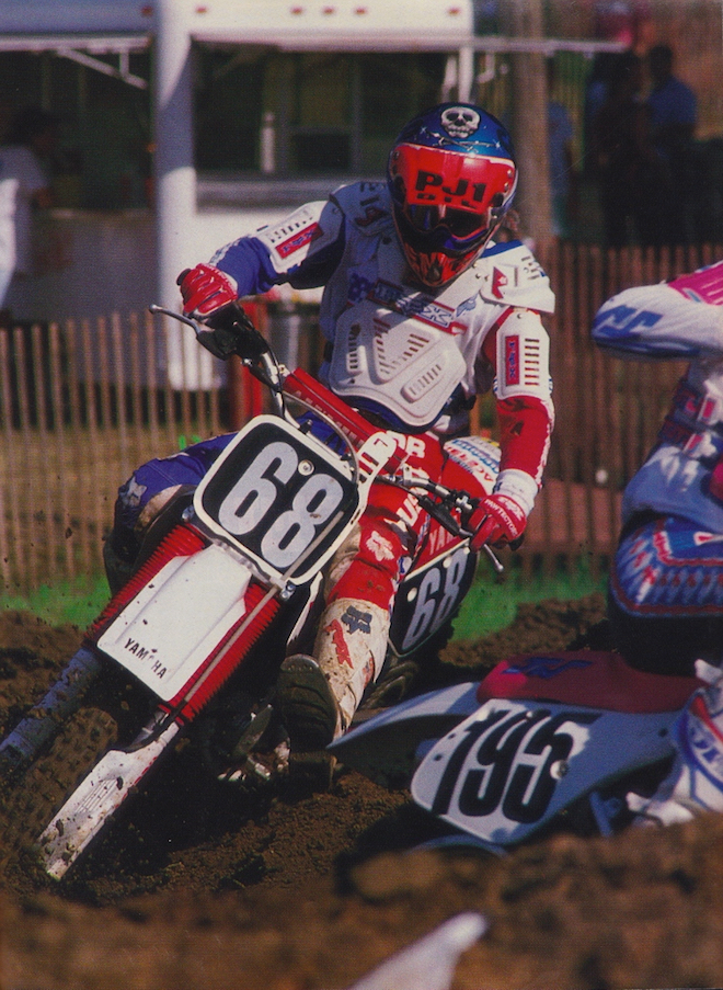 In 1988, Yamaha had quite a stable of young talent in the wings. Certainly the highest profile of which was North Carolina’s Damon Bradshaw (68), who would pilot his YZ125 to an impressive fourth overall in his pro debut at Spring Creek in 1988. Photo Credit: Motocross Action |