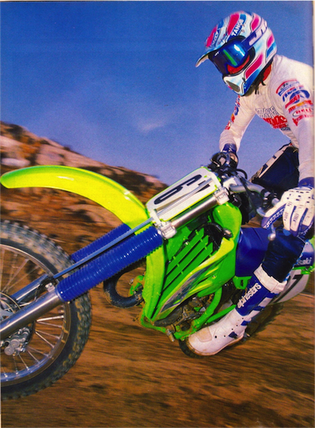 The Kermit Komet: In 1984, Kawasaki’s run of 125 futility would finally end with the introduction of their rocket-fast ’84 KX125. The green meanie ripped through the powerband like it was a 175 and left the other 125’s in its wake. Nineteen eighty-four 125 National Champ Jeff Ward demonstrates. |