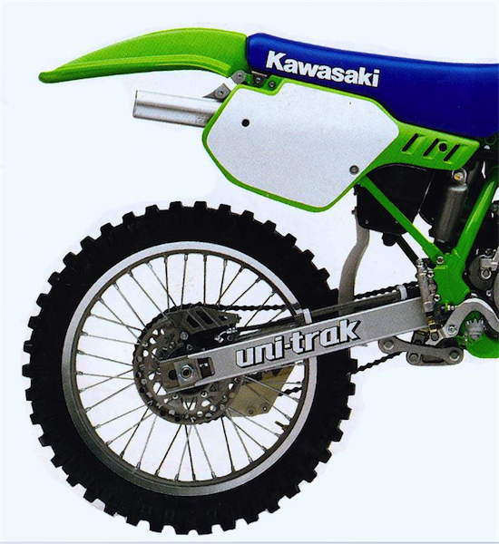 In 1989, this was the best rear suspension in the 125 class. Punching out a full 13 inches of travel, the KYB shock on the KX gobbled up hits big and small with nary a whimper. |