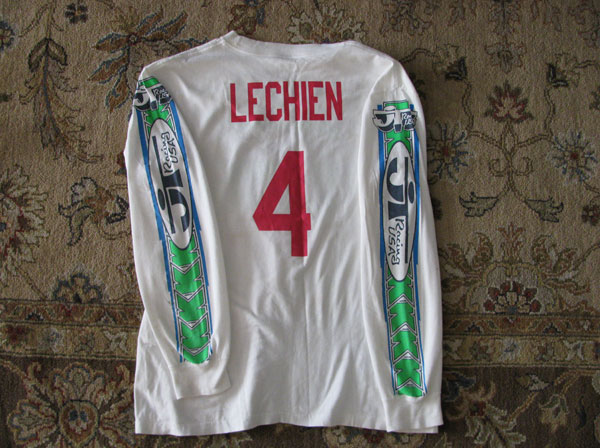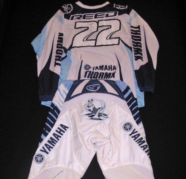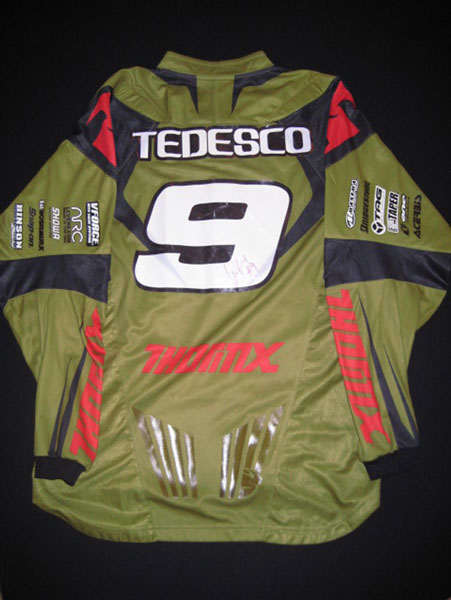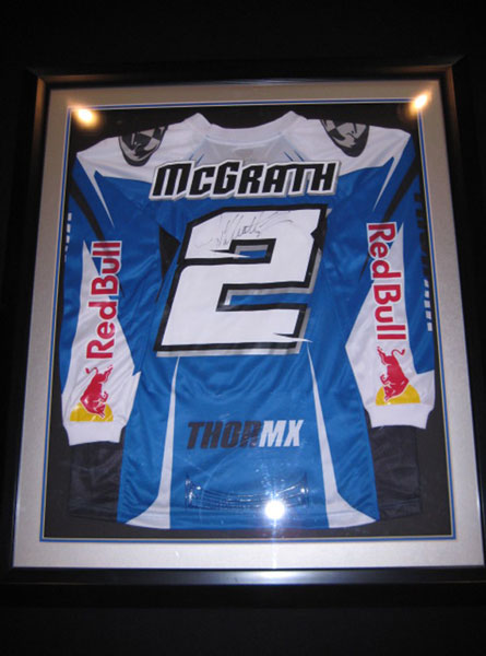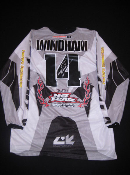 | The Carmichael jersey is from the first Thunder Valley national in 2005. Ricky dominated the whole weekend and went 1-1. This is his actual race worn jersey from the second moto. You can still see the dirt an sweat stains. I was dating the trophy girl that worked the race that day and she asked Carmichael for his jersey on the podium. He said yes, so we went back to the semi after the race and he signed it and gave it to her. She then gave it to me. While she was waiting outside the semi Milsaps was hitting on her. Funny stuff! |