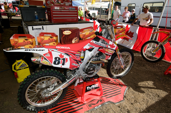 Team Canada made the A Final!! In all seriousness, it was a great ride by the guys. Here, on top of Kyle Keasts bike, is their motivation to make the A final. Free Timbits for everyone! |
