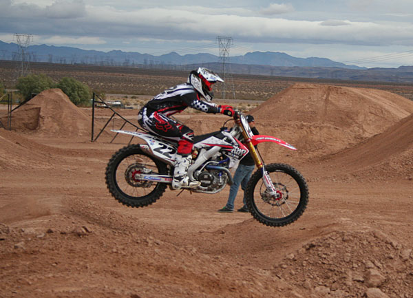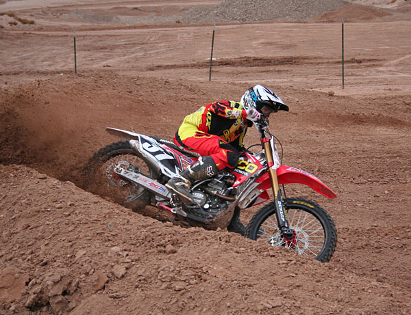 Chad spent a few days at the Honda track testing some things and then retreated out to Castillo Ranch where Mark Barnett built him a track and since then, he’s been out there. Think Rocky in Rocky IV. |