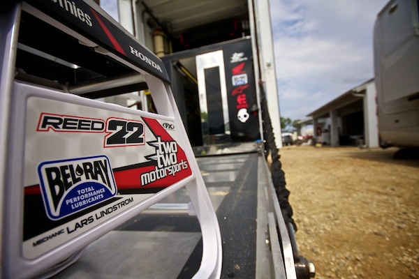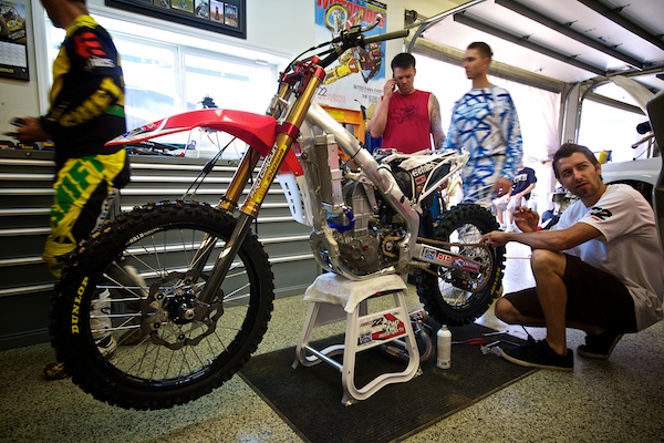 | Reed’s race bike was being prepped by Lars Lindstrom in the workshop. |