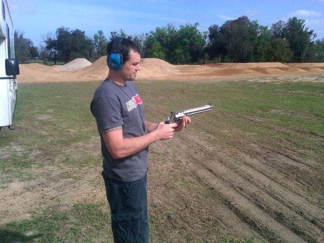 Swizcore decided to see if he could shoot the .50 caliber handgun. You know, just for kicks. |