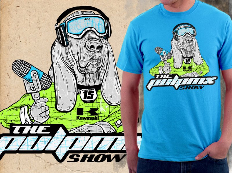 Swizzle- Homeboy took the liberty of changing a font in the show logo which was grounds for disqualification(–just kidding). This submission reminds me of that poster of the dogs playing poker; solid artistry but just awkward to look at on your wall or a shirt. Matthes- I don’t know man, I guess I like dogs because this was solid. I also liked the random dude wearing the shirt mock-up also. Gives you context. Pookie- This was Steve’s brother’s other pick for the win. Bassets rule, this one looks like Hanky. |