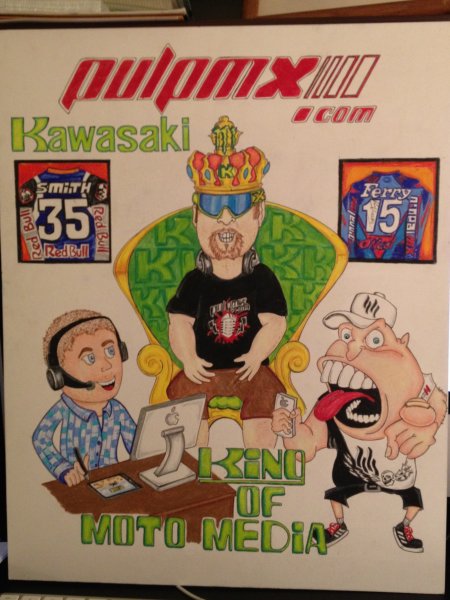 Swizzle- It’s like the OCC version of the PulpMX Show. Matthes- Kenny looks like he’s stoned in this shot. Pookie- I liked all of the submissions that had pictures of the guys on it. But Steve should have been in the middle, obviously. |