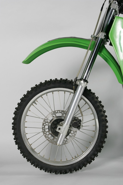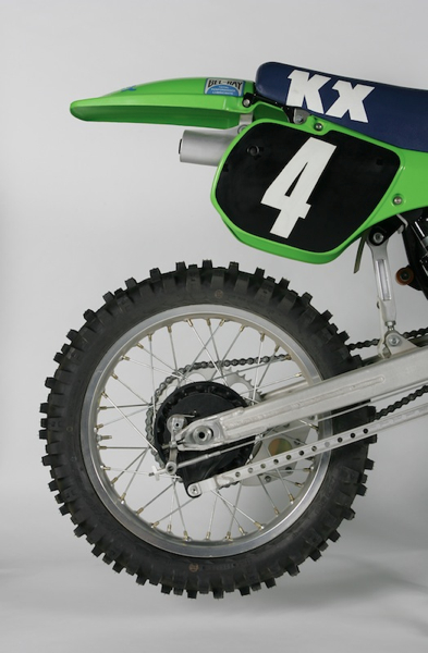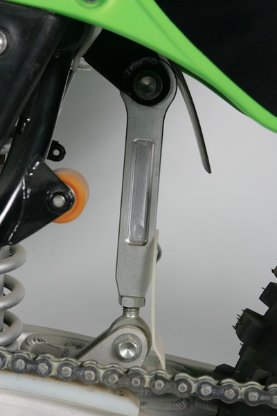 Early 80’s KX’s all used a version of this “dog bone” rear linkage design. Interestingly, you could actually adjust the link’s length to alter things like ride height. One problem with the dog bone design was it had a rather high center of gravity; it was eventually phased out for a more conventional linkage design. Photo Credit: Stephan LaGrand