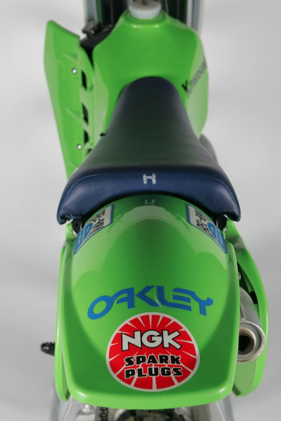 I always liked this fender design. It is about a million times better looking than the gigantic snow shovel Kawasaki stuck on their KX’s only a few years later. The old school Oakley sticker is cool too as Wardy was one of the iconic brands first “Factory Pilots”.