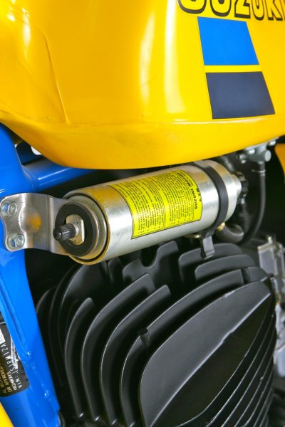 | Suzuki picked an interesting location for the shock’s remote reservoir. Photo Credit: Stephan LeGrand |