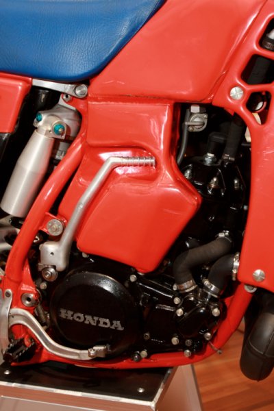 David Bailey would have fond memories of this bike as he rode one of these to the 84 US 500 outdoor title. By 86 these works bikes were outlawed in the US because of the introduction of the production rule. This weapon of works exotica, was the first version of a model that would terrorise Euro GP tracks for three years until Honda went racing with production based hardware in 87. Malherbe started the domination with the 84 World title while Thorpe went back to back in 85 & 86.
