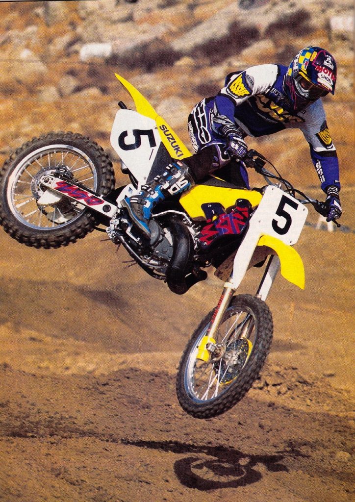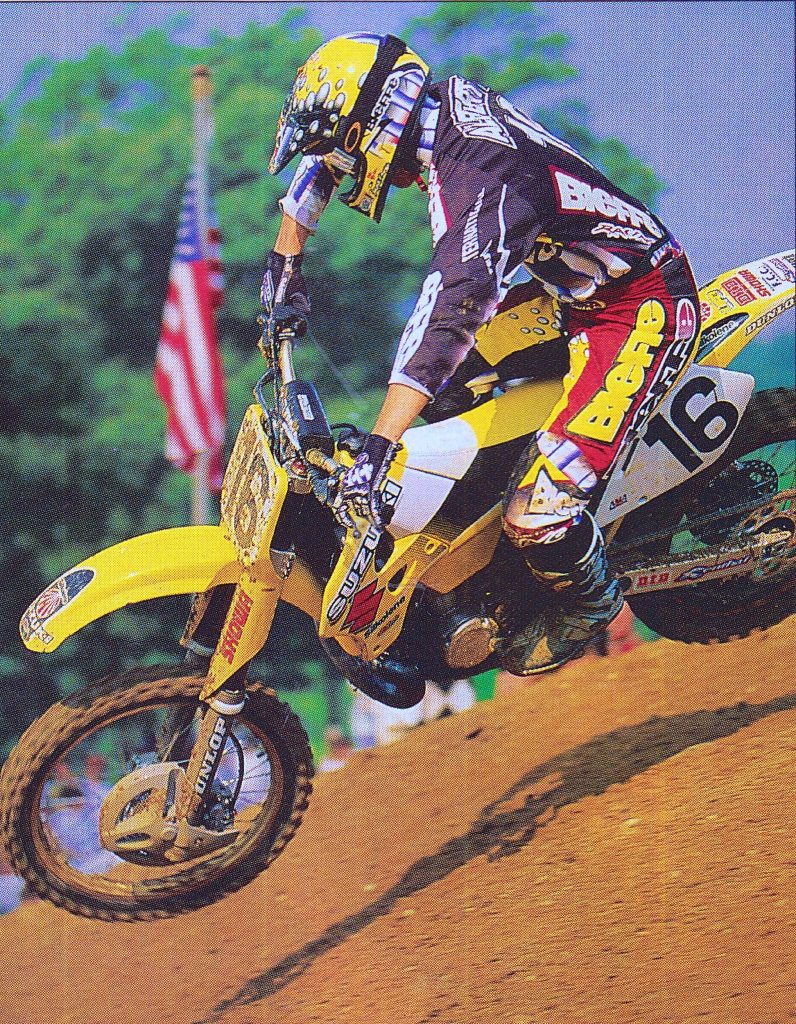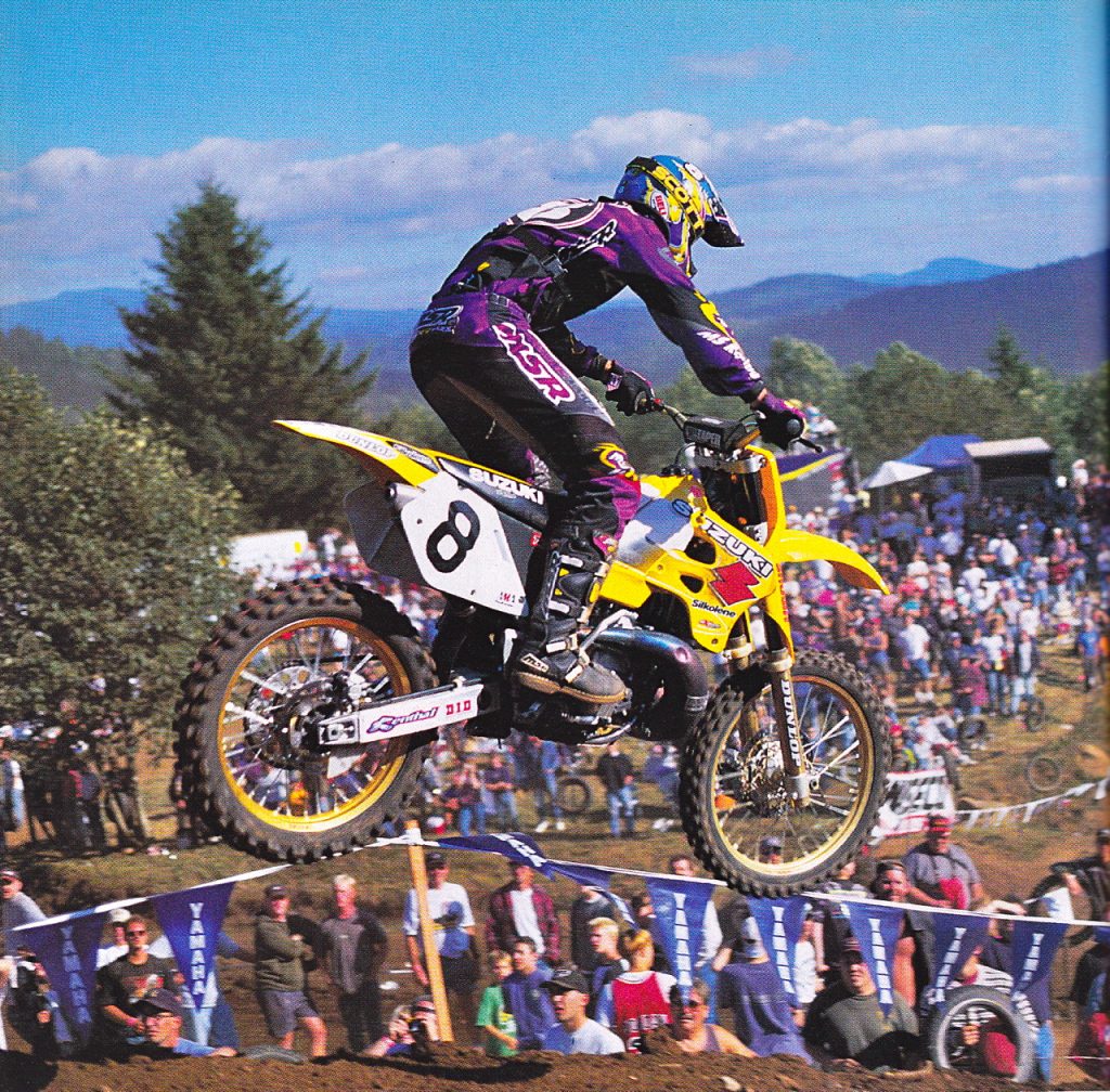 Greg Albertyn had some truly spectacular get-offs on the new RM250 during the ’96 season. At the Houston Supercross he got ejected off the bike 30 feet in the air while jumping a huge quad. At High Point, he appeared to be headed to his first US win when he literally fell off the back of his bike in a rutted corner. Even though he had some hard crashes, the tough South African never failed to get back on the bike and keep trying. His perseverance would finally pay off with a 250 National Motocross title for Suzuki in 1999. Photo Credit: Donn Maeda