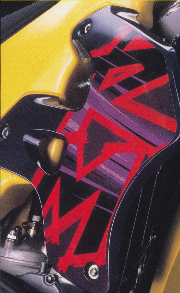 In 1996, the Factory Suzuki squad ditched the stock purple tidbits and went with a much cleaner all-yellow motif. I had this factory-replica N-Style kit on both of my ’96 RMs and I really think it improved the looks of the stock machines. Photo Credit: Stephan LeGrand