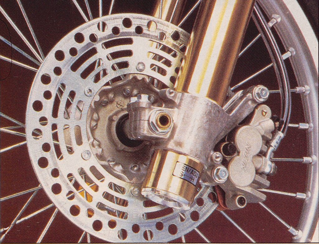 One of the major complaints about conventional forks had always been their propensity to get hung-up in ruts. In order to address this, the RM’s the new 49mm Showa conventional forks employed a design with very little overhang below the front axle. Photo Credit: Suzuki