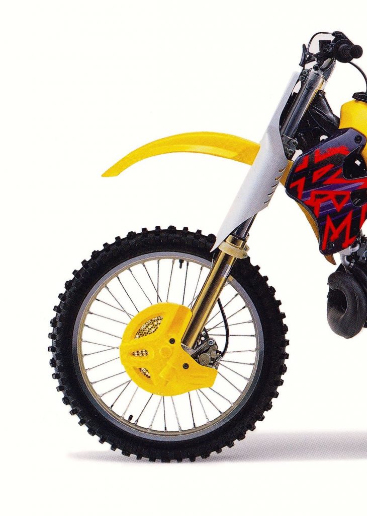 The biggest news on the ’96 RM was probably the all-new 49mm Showa conventional forks. They provided a plush feel and gobbled up everything on the track with aplomb. For anything short of Supercross they were absolute magic. Photo Credit: Suzuki