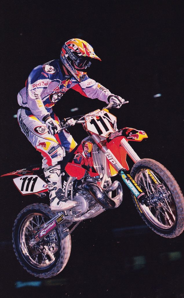 After two-year in the 125 class, Langston was looking to move up to the 250 division for 2003. At this point, Langston was quite accomplished at motocross, but still a bit rough around the edges at supercross. The new 250 was also an unproven machine that had not comported itself well inside the stadiums. Outdoors and off-road, the KTM’s no-link PDS suspension seemed to work well, but under the lights, its unique handling proved difficult to tame. For KTM, the best situation would be to bring in a more experienced rider to help develop the 250 program and mentor Langston. Amazingly, that is just what happened in the fall of 2002 when the greatest supercross rider in history basically fell into their laps.