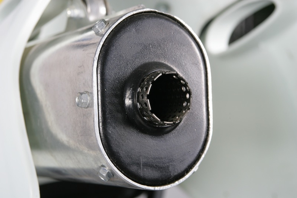 The big KTM 550 actually came equipped with three separate mufflers. There was a traditional silencer, a pre-muffler installed in the stinger and a removable Answer Sparky (remember those?). The Answer spark arrestor could be slipped on over the stock silencer for off-road use or removed for MX. |