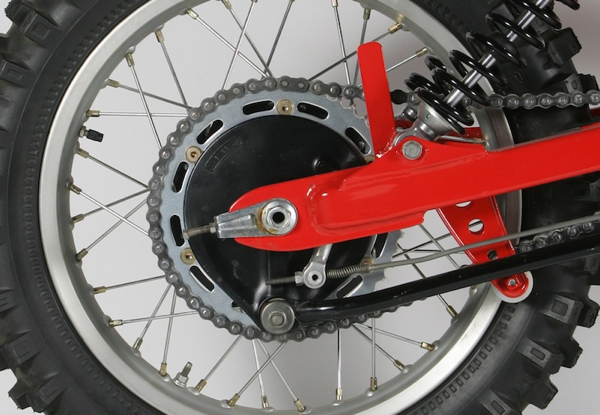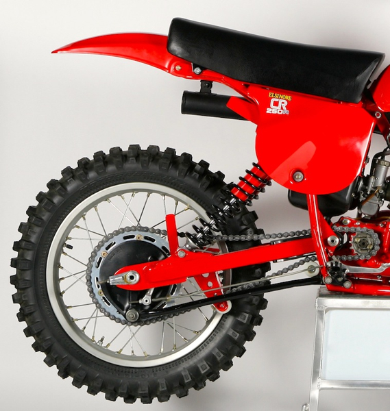 | When Honda set out to build the ’78 CR250R, they were influenced heavily by the best European designs of the day. The frame shared more than a passing resemblance to a Husqvarna design, and the right-drive, left-kick was as Euro as it got in ’78. While the Husky-clone frame handled very well, the wimpy steel swingarm and gruesome rear shocks needed to be addressed to get the most out of the Red Rooster. Photo Credit: Stephan LeGrand |