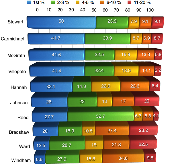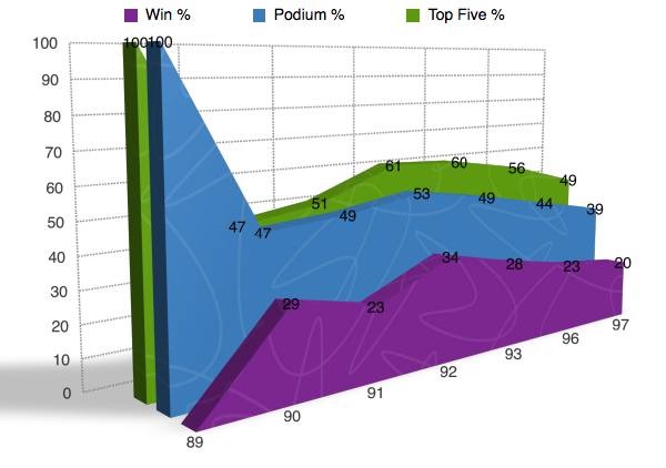 Again the percentages are NOT the riders % for the given year, but instead they are for the riders career after the said year was completed.