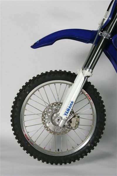 Yamaha’s Kayaba “mid-valve” front forks may not have been as trick as the works style Showa “twin-chambers” in ’95, but carful set up made them every bit the match on the track. They were plush on all surfaces and well sorted for most riders. Fast pro’s complained of harsh bottoming, but for 90% of the riders, the YZ offered the best package of ’95. |