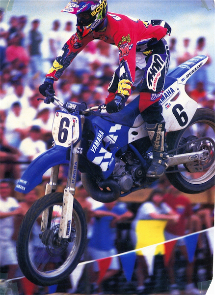 Jeff Emig had a solid season in ’95 on the YZ250. He would finish the Supercross series in third place behind Larry Ward (also on a YZ250) and series champ Jeremy McGrath. He would also win his first ever main event in Las Vegas during the infamous night the lights went out. In the Nationals, Fro would go one better, winning Southwick and taking second place in the series standings. In 1996 Jeff would make a move to Team Kawasaki and capture his first 250 Outdoor National Motocross title. |
