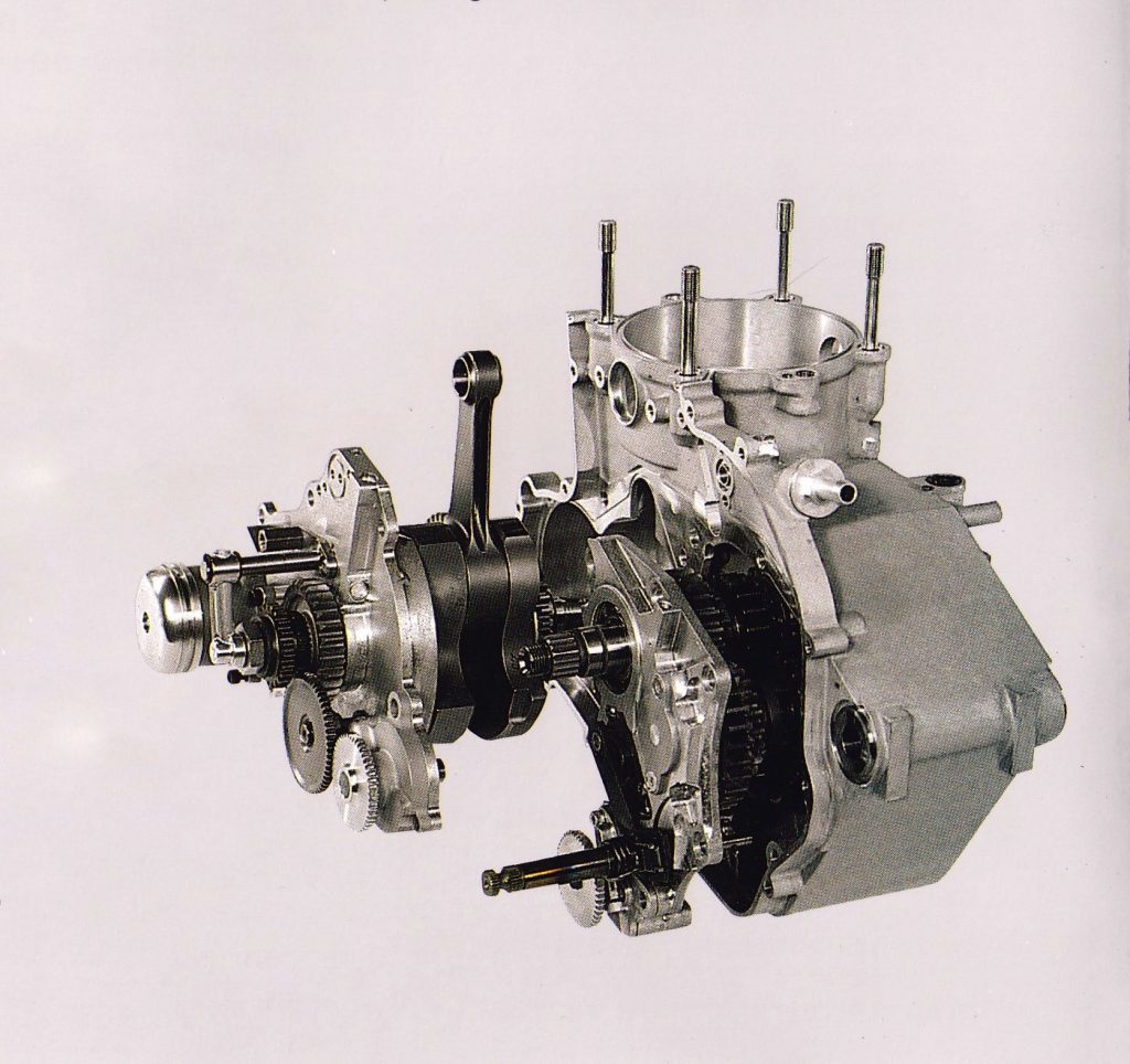 One unique feature of the new MX400 motor was its case design, which allowed the crank and transmission to be removed without splitting the cases. Photo Credit Cannondale