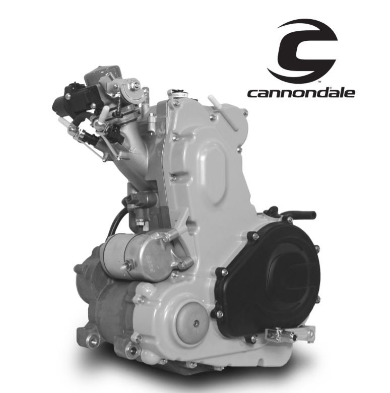 The new motor bumped up the displacement to 432cc and featured a four-valve dual-overhead-cam design. With the cylinder reversed, the intake was moved to the front and the exhaust outlet was moved to the back. According to Cannondale, this was done to reposition the cylinder for better weight distribution, provide a straighter intake tract for increased power, and shorten the exhaust pipe for reduced weight and stronger top-end performance. The lower cases were unique as well and featured a one-piece design that allowed the crank and transmission to be removed without splitting them in a traditional fashion. The transmission was a five-speed “cassette” style that could be removed as a complete unit. To prevent contamination from the clutch infiltrating into the top end, the new motor featured separate oil chambers with the bulk of the top end’s oil housed within one of the frame’s large aluminum spars. Finishing off the motor package was an electric starter and an all-new Sagem fuel injection system.