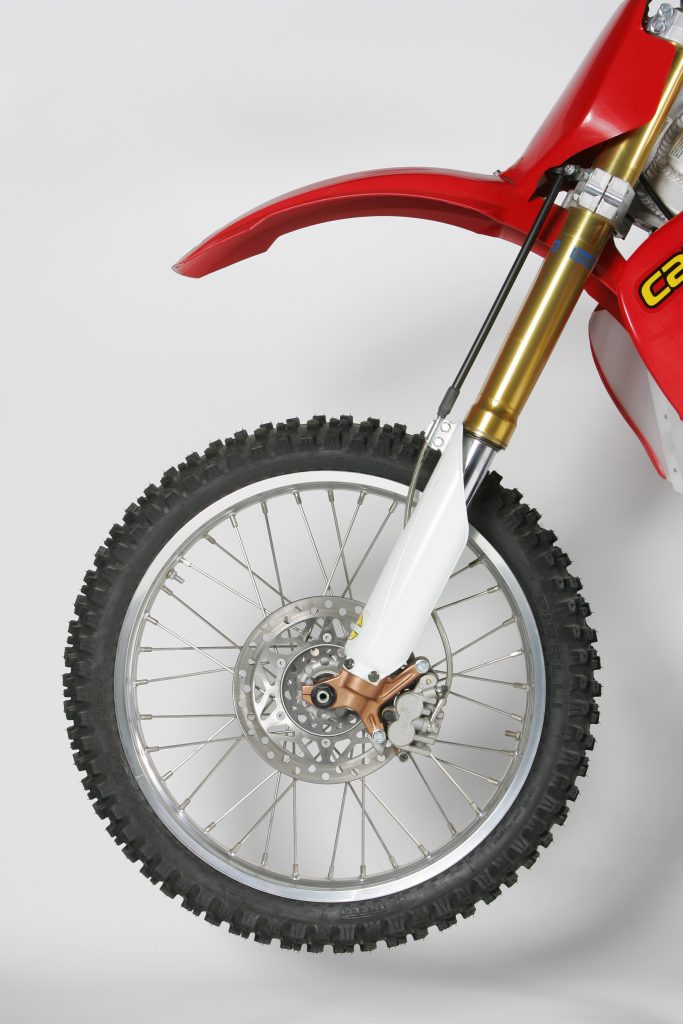 On the detailing front the Cannondale was impressive in some areas but head-scratching in others. Items like the high-dollar Öhlins suspension, plush seat, aluminum bars, great pegs, Nissin brakes, and beautiful alloy welds pointed to the premium aspirations of the brand, but its assortment of oddball fasteners, poorly thought out servicing, and questionable reliability belied a machine not quite ready for prime time. If Cannondale had been able to spend another year or two sorting out the MX400, things might have turned out very differently. Unfortunately, however, by 2001 the brand was hemorrhaging money and had to release an unfinished product. Its original estimate of $20,000,000 had ballooned to nearly $80,000,000 and there was intense pressure to get the MX400 and its off-road variants to market. Bold, pioneering, and incredibly ambitious, the Cannondale motocross project turned out to be a cautionary tale of corporate hubris.