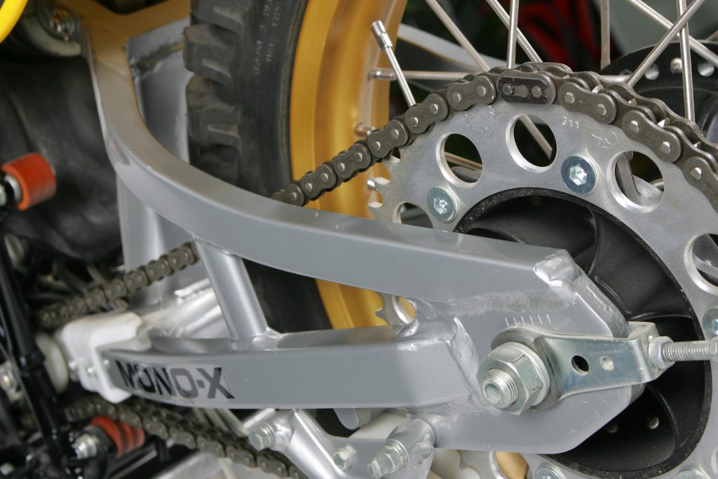 When Tilkens originally got the idea for his single shock rear suspension, he grafted a Citroën car shock onto a modified CZ frame to test the concept. Tilkens initially offered the patent to Suzuki, who tested it, but declined to purchase the technology (against the advice of Roger DeCoster and Sylvain Geboers). From there, Tilkens went to Yamaha, who seeing the potential jumped on the design. While the original monoshock was far superior to anything else available in 1972, its high center of gravity and lack of a rising-rate linkage eventually doomed it to the history books.