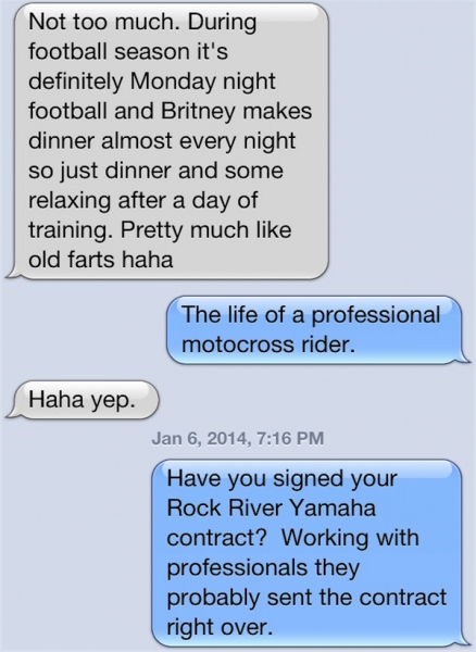The name Siminoe sounded familiar and with a quick search on PulpMX I found he came up Just Short at Seattle SX last year. At the time I thought maybe he was dating Bradshaw’s daughter, anyways you can read about it here.