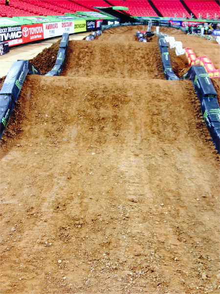 12. Track walk: Probably the coolest part of my Atlanta experience is actually getting to walk the track before practice. For anyone who has actually ridden a dirt bike, it is a truly eye opening experience. Jumps that look like a piece of cake from row twenty are absolutely terrifying up close. This uber-gnarly double across the start straight for instance looked absolutely impossible to me. It had no run, a steep take off and a brutally peaked landing. If you gave me a million dollars and a nitro-burning CR500 (much less a 250F), I still don’t think I could execute this leap. The talent these guys have is truly incredible.