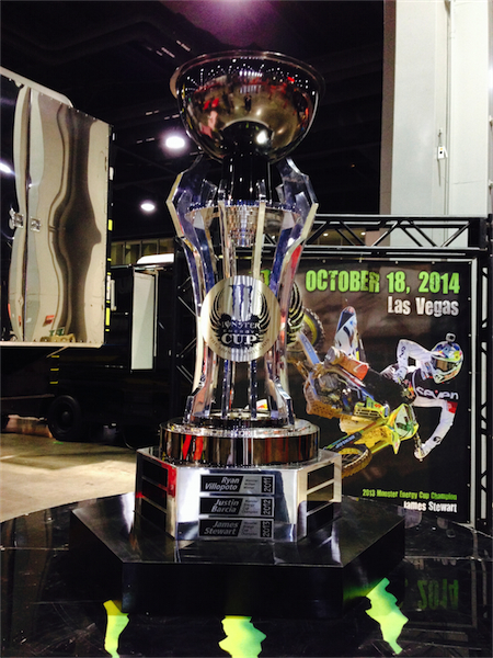 16. This really cool and really massive Monster Energy Cup trophy was on display in the Yoshimura Suzuki pits. Perhaps a bit large for your average den, it certainly makes quite a first impression.