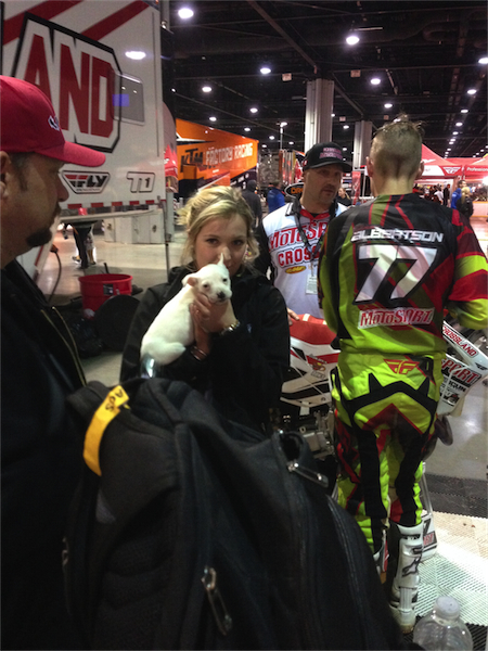 25. After the mains, I went back to the pits to hang with Matthes as he collected EKS Brand googles from the riders he supports and tried to nail a few interviews. Along the way, I got to meet the lovely Georgia Albertson and her new friend.