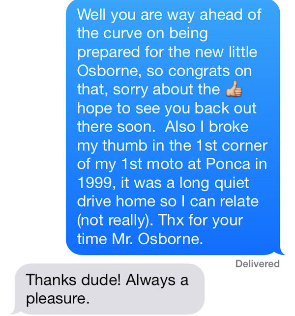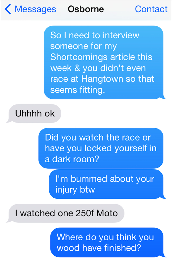 Having a bad race or weekend is a shortcoming but not even lining up to race is the ultimate shortcoming. I present to you the Zach Osborne interview.
