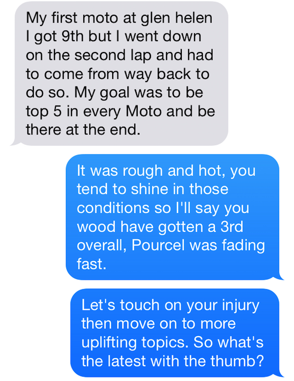 Thanks for reading please email jasonw@racerxill.comwith any compliments and complaints, he is also happy to provide you with the TV schedule for when the race will be aired in your area.