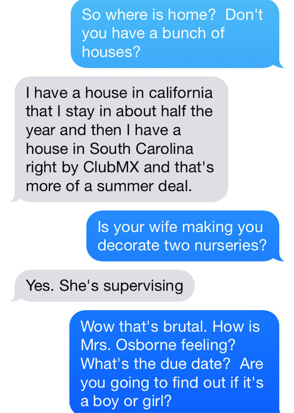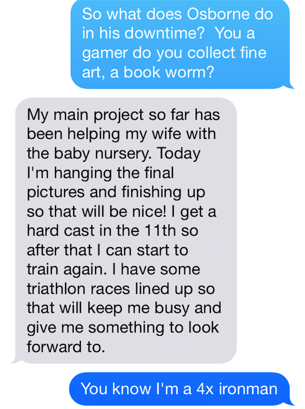 It almost looks like Osborne is giving a thumbs up in this picture (too soon?) |