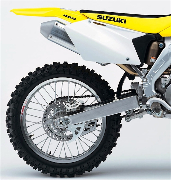 | A full eight years after the introduction of the revolutionary YZ400F, Suzuki would finally get into the thumper game with a big-bore four-stroke of their own. The 2005 RM-Z450 was far from perfect, with its slightly big feel and gappy trans, but it was fun to ride and competitive. In 2005, nothing could outclass the omnipotent CRF450R, but the RM-Z came the closest to unseating the champ. |