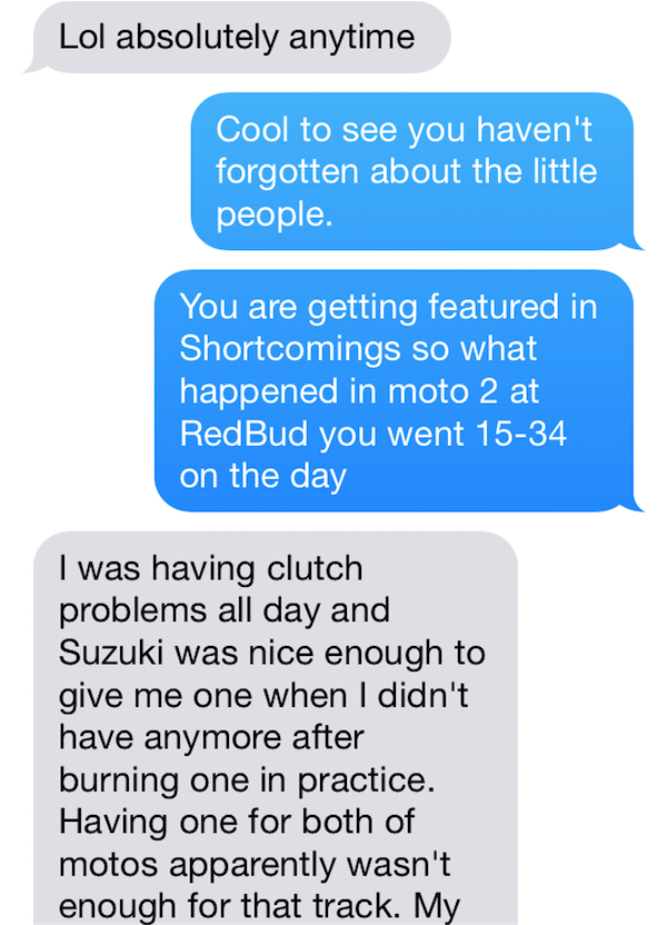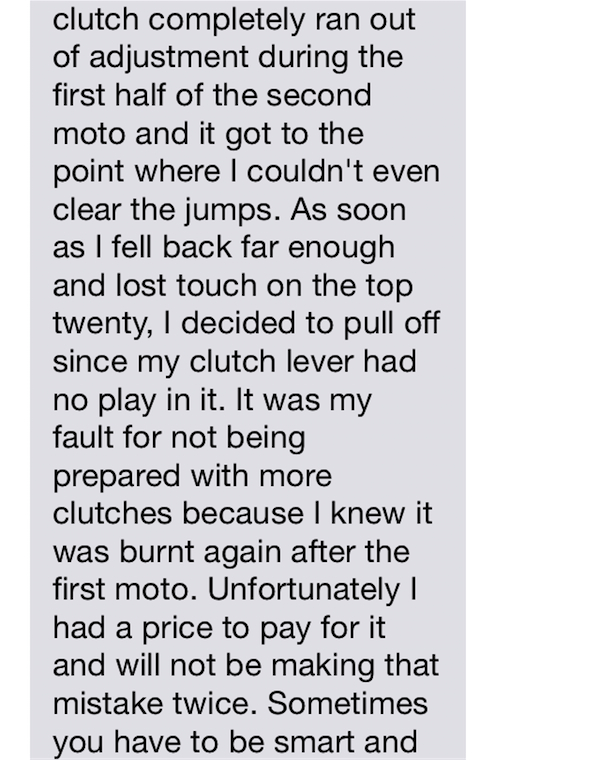 Thanks for reading please email jasonw@racerxill.comwith any compliments and complaints, he is also happy to provide you with the TV schedule for when the race will be aired in your area.