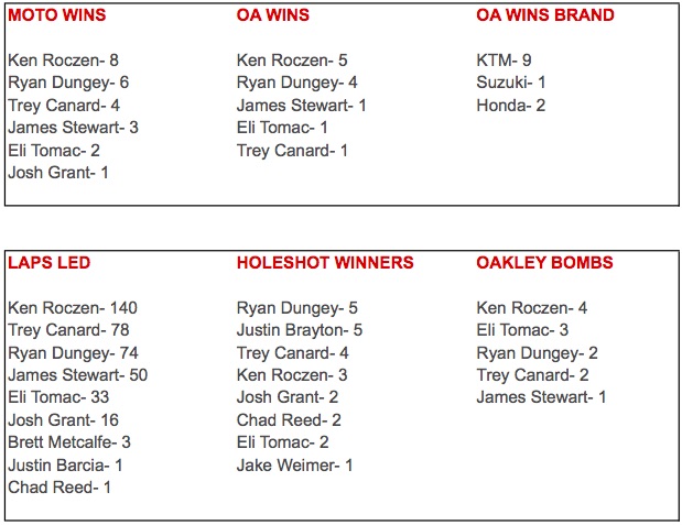 One thng that really stands out for me is the laps led by Roczen. The title really went down to the wire yet the German almost had everyone doubled in the amount of laps led.