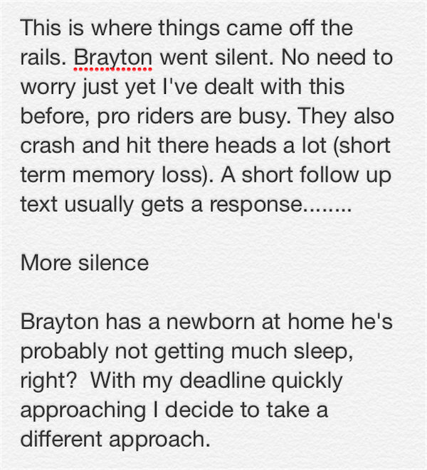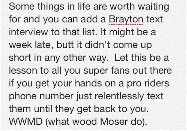 Moser was faced with a pretty difficult task for this interview, and after two weeks of pounding the pavement, came out successful!
